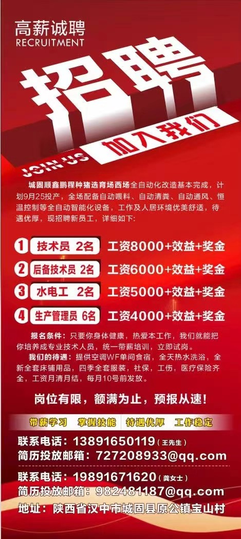 城固顺鑫鹏程种猪选育场2025年校园招聘简章