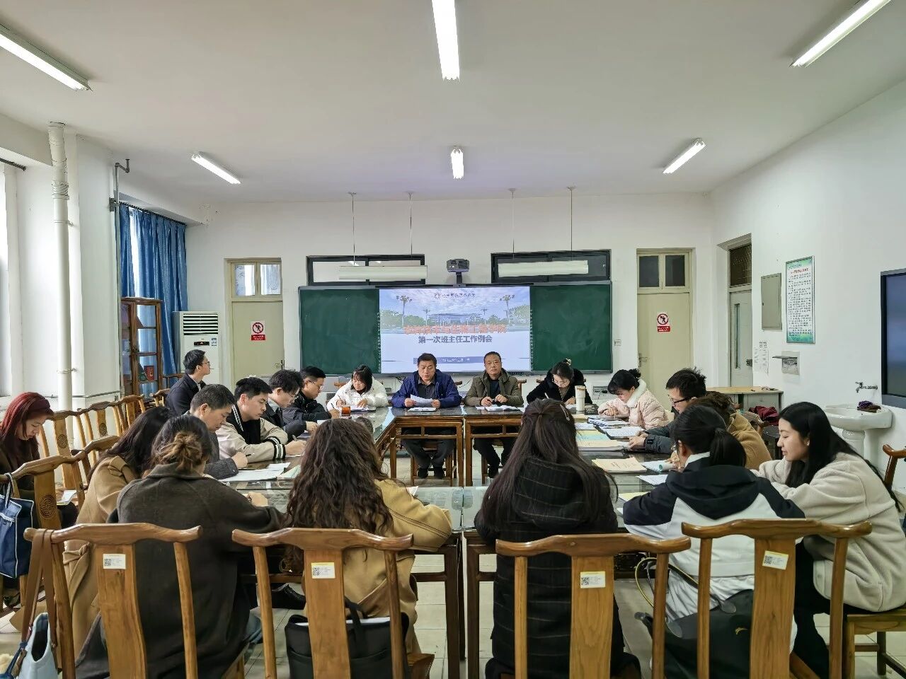 2026年3月1日下午,农林技术与生物工程学院组织召开第一周班主任工作例会。农林学院党总支书记吴兆军、院长张可跃、副院长赵苗苗、综合办主任王峰、学管办主任闫衡、全体班主任(辅导员)老师、学管办全体工作人员参加本次会议。会议由闫衡主持。