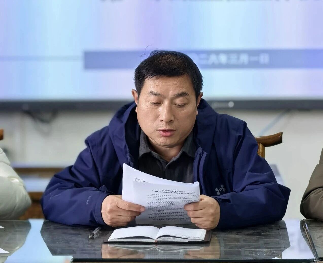 会议第一项,由张可跃领学了《汉中职业技术学院2026年校园安全稳定工作实施方案》,从强化组织领导,压实安全责任、深化安全教育,提升安全素养、加强安全管理,消除安全隐患等四个方面,涵盖了学生群体安全教育、教职员工安全提醒、校园安全管理等二十一点内容。同时,他提醒各班级要提前熟悉教学地点,做好新学期第一堂课的准备,他强调各班主任要持续假期学生的专业教育,形成良好的的班风、学风。